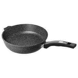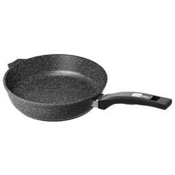 Сковорода 30см с антипригарным покрынием и несъемной ручкой серии "Гранит black". Подходит для всех типов плит, кроме индукционных. Можно использовать в посудомоечной машине.