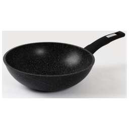 Сковорода ВОК 28см с антипригарным покрытием и несъемной ручкой серии "Гранит black". Подходит для всех типов плит, кроме индукционных. Можно использовать в посудомоечной машине.