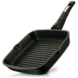 Сковорода-гриль 24х24 см. Антипригарное покрытие. Плита: Газовая, Электрическая, Стеклокерамическая. Кроме индукционных плит. Использование в посудомоечной машине. Для использования в духовом шкафу. Ручка съемная. Крышка стеклянная. Если вы приверженец здорового питания и стараетесь готовить с минимальным количеством масла, эта сковорода создана для вас. Сковороды гриль пользуются огромной популярностью у профессиональных поваров, так как её использование придает блюдам особенный оттенок вкуса. Главный признак такой сковорода Гриль - ребристое дно. Продукты жарятся на этих ребрах как на решетке, только без открытого огня. Во время приготовления сок и жир от продуктов не пригорает к их поверхности, а стекает в канавки между ребрами на дне и уже оттуда испаряется.