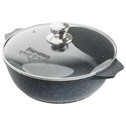 Жаровня 2.4л с антипригарным покрытием и стеклянной крышкой серии "Гранит star" Подходит для всех типов плит, кроме индукционных. Можно использовать в посудомоечной машине. Можно использовать в духовке отдельно без крышки.