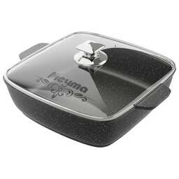 Жаровня квадратная 26х26 см, с антипригарным покрытием и стеклянной крышкой серии "Гранит black"; Подходит для всех типов плит, кроме индукционных; Литой корпус; Прямые борта; Большая рабочая площадь дна; Современное сверхпрочное антипригарное покрытие; Стеклянная крышка с ручкой из нержавеющей стали; Прокрашенное дно посуды; Легко моется; Можно мыть в посудомоечной машине; Можно использовать в духовке отдельно без крышки.