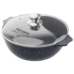 Жаровня 5л (30 см) с антипригарным покрытием и стеклянной крышкой серии "Гранит" Подходит для всех типов плит, кроме индукционных. Можно использовать в посудомоечной машине. Можно использовать в духовке отдельно без крышки.