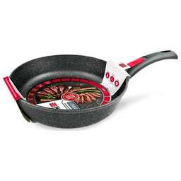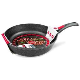 Тип сковорода универсальная Материал алюминий Антипригарное покрытие есть Совместимость с индукционными плитами есть Особенности мытье в посудомоечной машине, ненагревающаяся ручка Размеры Диаметр верха 28 см Диаметр дна 20.8 см Толщина дна 6.8 мм Высота стенок 7.08 см Толщина стенок 2.8 мм Вес 1.45 кг Литой алюминиевый корпус сковороды не подвержен деформации и обеспечивает равномерный нагрев. Многослойное антипригарное покрытие c эффектом натурального камня позволяет готовить с минимальным количеством масла и сохранять натуральный вкус продуктов. Антипригарное покрытие на водно-кремниевой основе безопасно, не содержит PFOA (перфтороктановой кислоты). Эта сковорода выполнена с использованием современной технологии «Full Induction», дно сковороды оснащено цельным ферромагнитным диском, который распознается всеми типами индукционных плит и обеспечивает быстрый разогрев сковороды до идеальной температуры для жарки.