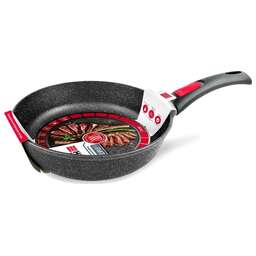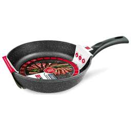 Тип сковорода универсальная Материал алюминий Антипригарное покрытие есть Совместимость с индукционными плитами есть Особенности использование в духовке, мытье в посудомоечной машине, съемная ручка Размеры Диаметр верха 28 см Диаметр дна 20.8 см Толщина дна 6.8 мм Высота стенок 7.08 см Толщина стенок 2.8 мм Вес 1.48 кг Литой алюминиевый корпус сковороды не подвержен деформации и обеспечивает равномерный нагрев. Многослойное антипригарное покрытие c эффектом натурального камня позволяет готовить с минимальным количеством масла и сохранять натуральный вкус продуктов. Антипригарное покрытие на водно-кремниевой основе безопасно, не содержит PFOA (перфтороктановой кислоты). Эта сковорода выполнена с использованием современной технологии «Full Induction», дно сковороды оснащено цельным ферромагнитным диском, который распознается всеми типами индукционных плит и обеспечивает быстрый разогрев сковороды до идеальной температуры для жарки.