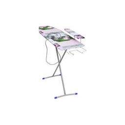 Размер рабочей поверхности: 112х34,5 см Материал рабочей поверхности - ДСП 2 положения высоты: 0,7 и 0,8 м Выдвижная подставка под утюг Чехол из качественных х/б тканей ярких расцветок Подрукавник: Съемный Подставка под утюг Электроудлинитель 2,2 м
