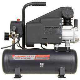 Объем ресивера: 9. Мощность: 750. Напряжение: 230. Комплектация: компрессор, гарантийный талон. Особенности: Охлаждение встроенным вентилятором. Манометр для контроля давления на выходе. Манометр для контроля давления в ресивере. Регулятор давления с предохранительным клапаном.. Вес нетто: 14. Количество выходов: 1. Количество цилиндров: 1. Габариты упаковки (ед) ДхШхВ: 0.52x0.27x0.52. Вес упаковки (ед): 15.4. Гарантия: 12 мес.. Цвет: серый / черный. Давление: 8 Бар. Производительность: 126 л/мин. Производительность: 126 л/мин. Ресивер: 9 л. Мощность: 750 Вт. Вес: 14 кг. Давление: 8 Бар