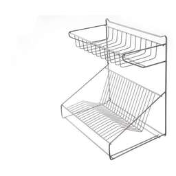 RUS-285001 Zn Сушилка для посуды настенная с поддоном, размеры 41х28.5х38 смСделана из стальной проволоки толщиной 5 мм с антикоррозийным покрытием. Цвет серебристый.