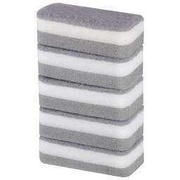Губки из крупнопористого поролона с фиброй (5шт) размер: 98*67*35мм материал: крупнопористый поролон, фибра упаковка: пакет Набор состоит из 5 губок из крупнопористого поролона с абразивным чистящим слоем, который не крошится и не отслаивается от губки. Мягкий слой - для деликатного мытья; жесткий слой - для сильных загрязнений.