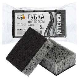 РЫЖИЙ КОТ Губка д/посуды Black (5шт) (98*67*35мм) (310578)