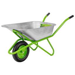 Садово-строительная тачка Сибртех 689638 грузоподъемностью 170 кг, с кузовом объемом 110 л, предназначена для транспортировки грузов. Подходит для перемещения сыпучих материалов (песка, цемента, гравия и т.д.), вывоза строительного и садового мусора, а также для перевозки грунта, дерна, мульчи и других грузов. Одноколесная тачка отличается повышенной маневренностью. Пневматическое колесо обеспечивает плавность хода. Тачка незаменима на строительной площадке, дачном участке, складе. Преимущества Надежная конструкция — рама диаметром 32 мм и опора диаметром 25 мм изготовлены из стальной трубы с толщиной стенки 1 мм, поэтому тачка выдерживает нагрузку до 170 кг. Устойчивость к деформации — толщина стенок кузова составляет 0,7 мм, его края завальцованы для повышения ударопрочности. Защита от разрушения — цинковое покрытие предохраняет кузов от образования коррозии. Удобная эксплуатация — передний упор позволяет производить фронтальную разгрузку.