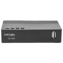 Это высококачественный ТВ ресивер с обучаемым пультом управления в комплекте (можно с одного пульта управлять и ресивером, и телевизором). HD-250 подходит для приема ЭФИРного цифрового телевидения в формате DVB-T/T2/C. Его яркая упаковка не останется незамеченной на полке магазина. Сам ресивер выполнен из пластика и в лаконичном дизайне. Особенность этого ресивера в его комплектации. Вместе с устройством вы получаете USB Wi-Fi адаптер 7601. Это позволяет телевизору с помощью ресивера подключаться к беспроводной сети. Так с TV устройства можно выходить в интернет. На ресивере расположены следующие разъемы: антенный вход, 2 USB-разъема, HD OUT, композитный аудио-видео выход, разъем для подключения внешнего блока питания. HD-250 оснащен чипсетом GX6701. Поддерживает диапазон частот 174-862МГц. Ресивер имеет размер 120х64х28мм.