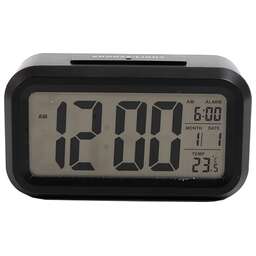 Электронные часы с функцией будильника, высота цифр 35 мм, размер дисплея 110*49 мм, подсветка дисплея, термометр, количество будильников * 1, повтор сигнала будильника, кнопочное управление, календарь, питание 3*ААА (не в комплекте), размер изделия: 137*77*44 мм, вес изделия: 0,148 кг.