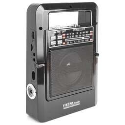 Цифровой тюнер, FM диапазон (FM-64-108МГц), автонастройка в FM диапазоне на 34 станции, 1 динамик (монозвучание) мощностью Ф57mm/4Ом/3W, питание 5В, аккумулятор типа BL-5C, емкостью 400мА/ч, размер 114*33*73мм, дисплей, воспроизведение с USB, microSD (TF), разъем для внешнего питания 5В, телескопическая антенна, разъем под наушники, ручка для переноски.