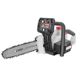 Пила цепная аккумуляторная 20 Вольт (без аккумулятора и зарядного устройства) , поперечное расположение двигателя, скорость движения цепи 6м/с, длина шины 10"(254мм), шаг звеньев/ количество звеньев цепи 3/8"/40. толщина звена 1,1мм, еъмкость масляного бака 170мл, тормоз цепи