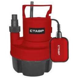 Насос погружной дренажный 350Вт, Ставр НПД-350ГВ, откачивание воды до 3 мм, производительность 115л/мин, напор 7м, давление 0.7бар, глубина 5м, диаметр выходного патрубка 1", 3/4”, максимальный размер частиц 5мм, поплавковый выключатель, корпус пластик, длина кабеля 5м (патрубок для шланга)
