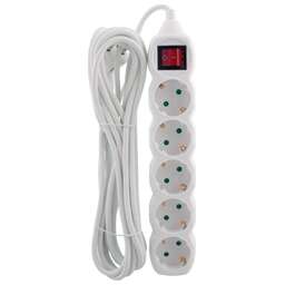 Сетевой удлинитель, который подходит для оснащения питанием рабочего места в офисе либо в домашних условиях. Рассчитан на подключение до 5-ти электроустройств максимальной суммарной мощностью 3500 Вт. Удлинитель оснащен удобными выключателями питания на каждое сетевое гнездо. Сетевой удлинитель при малой длине кабеля в 1,5 метра удобно использовать для подключения стационарных электроприборов, размещенных на небольшой площади. Каждое гнездо оснащено выключателем для отдельного отключения одного электроприбора, без отсоединения удлинителя от сети. Данное решение удобно в случае труднодоступности сетевой розетки. Удлинитель укомплектован заземлением, которое позволяет избежать поражения электрическим током и короткого замыкания. Разъемы закрыты специальными шторками, ограничивающими попадание пыли и мелких частиц на контакты.Материал корпуса выполнен из ударопрочного поликарбоната, относящегося к негорючим материалам."
