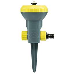 Дождеватель предназначен для полива растений и почвы. Оснащен тремя распыляющими головками, которые раскручиваются под напором воды и обеспечивают равномерный полив поверхности по кругу. Колеса, установленные на основании дождевателя, делают его мобильным, что позволяет быстро и удобно менять местоположение изделия для полива разных участков сада. Надежное и герметичное крепление шланга к дождевателю осуществляется при помощи универсального соединителя, расположенного на корпусе устройства. Дождеватель изготовлен из качественного и прочного пластика, устойчивого к воздействию внешних факторов.