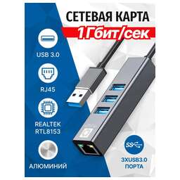 Сетевая карта 5bites UA3-45-11BK - компактное устройство, которое выполняет роль переходника и подключает ваш Ethernet-кабель к портативному компьютеру через USB порт. А так же добавляет три порта USB 3.0 в вашу систему. • Разъемы: USB AM -> RJ45 гнездо + 3*USB3.0 порта • Интерфейс: USB1.0/1.1/2.0/3.0 • Длина кабеля (см): 15 • Стандарт связи: IEEE 802.3 10 / 100 / 1000 base-t • Скорость передачи данных: 10 / 100 / 1000 Мбит/с (full duplex) • Питание (В): от USB порта • Чипсет: GL3510 + Realtek RTL8153 • Предназначение: добавляет в систему порт RJ45 и 3*USB3.0 порта • Поддержка ОС: WINDOWS XP/VISTA/WIN7/8/10 32 и 64bit, Linux, Android 1.x/2.x/3.x/4.x, MAC OS10.4 • Цвет: серый • Материал корпуса: алюминий
