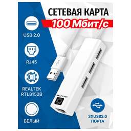 • Разъемы: USB AM -> RJ45 гнездо + 3*USB2.0 порта • Длина кабеля (см): 10 • Стандарт связи: IEEE 802.3 10 / 100 base-t • Скорость передачи данных: 10 / 100 Мбит/с (full duplex) • Питание (В): от USB порта • Предназначение: добавляет в систему порт RJ45 и 3*USB2.0 порта • Чип: Realtek RTL8152 • Поддержка ОС: WINDOWS 98SE/2000/ME/XP/VISTA/WIN7/8 32 и 64bit, Linux, Android 2.1/2.2/2.3/4.0, MAC OS8.6 или более поздней версии • Цвет: белый