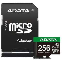 Бренд: A-DATA Серия: Speed Plus Подтип: microSDXC Комплектуется переходником в форм-фактор: SD Модель: UD256GUI3V30A2SP-RA1 PartNumber/Артикул Производителя: UD256GUI3V30A2SP-RA1 Емкость: 256 ГБ Классификация по скорости записи: Class 10 Класс скорости: UHS-I U3 Габариты упаковки (ед) ДхШхВ: 0.102x0.005x0.115 м Вес упаковки (ед): 0.017 кг Объем упаковки (ед): 0.00005865 м3 Тип: Micro SDXC Кол-во шт. в упаковке: 1 Скорость чтения, макс.: 180 МБ/с Скорость записи, макс.: 160 МБ/с Класс скорости видео: V30 Класс скорости для работы с приложениями: A2