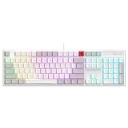 Интерфейс: USB. Мультимедийные дополнительные клавиши: есть. Для геймеров: да. Обычная/тонкая: обычная. Подсветка клавиш: есть. Клавиатура с русскими буквами: ДА. Дизайн клавиш: квадратные. Длина кабеля: 1.8. Тип элементов питания: от USB порта. Цвет английских букв: прозрачный. Цвет русских букв: прозрачный. Тип соединения: проводная. Количество клавиш: 104. Тип подсветки: RGB. Габариты упаковки (ед) ДхШхВ: 0.47x0.18x0.025. Вес упаковки (ед): 1.02. Время отклика: 1. Гарантия: 12 мес.. Цвет: белый. Особенности клавиш: клавиша функции (Fn). Конструктивные особенности: регулировка угла наклона, цифровой блок. Защита: от попадания жидкостей. Конструктив клавиатуры: классическая. Встроено: подсветка клавиш. Цвет русских букв: прозрачный. Особенности: мультимедийная, для геймеров. Интерфейс: USB. Тип соединения: проводная. Цвет английских букв: прозрачный