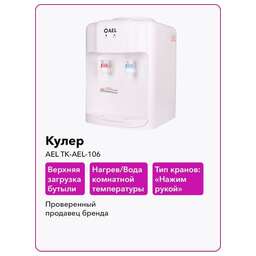 AEL TK-AEL-106 Настольный кулер для воды с верхней загрузкой бутыли без функции охлаждения. Нагревательный элемент в аппарате мощностью 550 Вт позволяет за час получить до 5 л горячей (90-95 градусов) воды. Имеет компактные размеры, благодаря чему легко устанавливается на стол или тумбочку не загромождая пространство. Оснащен двумя механическими кранами типа "нажим рукой" для подачи горячей воды и воды комнатной температуры. Корпус изготовлен из высококачественного пищевого пластика. Кулер подходит как для домашнего, так и для офисного использования, на предприятиях и учреждениях.