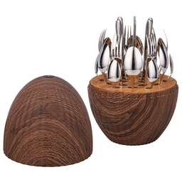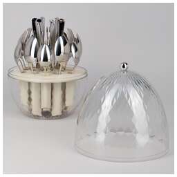 Премиальный набор столовых приборов на 6 персон. Высокое качество обеспечит длительный срок службы и надежность в эксплуатации. Безупречный внешний вид, эргономичность, удобная форма столовых приборов подойдет для торжественной сервировки. Удобная вращающаяся подставка в форме яйца позволит хранить все предметы компактно, легко и доступно. Сделайте сервировку по-настоящему выдающейся <br /> <br /> Набор столовых предметов включает в себя 24 предмета на 6 персон:<br /> - 6 столовых ложек<br /> - 6 столовых вилок<br /> - 6 чайных ложек<br /> - 6 столовых ножей<br /> <br /> Характеристики:<br /> - Вращающаяся подставка<br /> - Компактное хранение столовых приборов<br /> - Отличный подарок