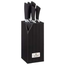 Нож - главный инструмент на кухне, а вернее ножи, т.к. даже самый лучший нож не сможет справиться со всем многообразием задач. Выбирая набор ножей AGNESS - Вы приобретаете комплект самых необходимых и чаще всего используемых ножей. Преимущества ножей AGNESS:<br /> ? Эргономичная ручка для удобной нарезки<br /> ? 2-х стороняя заточка лезвия<br /> ? Пластиковая подставка с наполнителем для безопасного хранения ножей.<br /> ? Подставка выполнена из высококачественного пластика и прочного полимера - графито-каучука, который помогает сохранить остроту кромки ножа. Внутренняя часть съемная, при необходимости ее можно промыть и просушить.Рекомендуется сушить подставку в разобранном виде.<br /> ? Состав набора: Нож поварской 20см, Нож для хлеба 20см, Нож для нарезки 20см, Нож универсальный 12,5см, Нож для чистки овощей и фруктов, 9см, Пластиковая подставка <br /> Рекомендована ручная мойка.