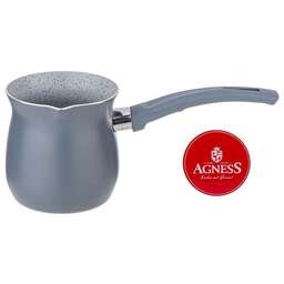 ТМ AGNESS представляет линейку посуды из утолщенного кованого алюминия премиального качества.<br /> Кованый корпус ТОЛЩИНОЙ 2,5 MM выполнен из высококачественного алюминия, который обеспечивает высокую теплопроводность и сокращает время приготовления.<br /> Кофе приготовится равномерно и быстро<br /> ДОЛГОВЕЧНОЕ, прочное антипригарное покрытие на 100% безопасно, так как не содержит перфтороктановую кислоту (PFOA FREE)<br /> Турку можно использовать на всех видах плит, кроме индукционных.<br /> Ручка с покрытием SOFT TOUCH (англ. - мягкое прикосновение) очень удобна для захвата и позволяет готовить без прихваток.<br /> Коллекционный дизайн серии "АРКТИК" - роскошный и практичный одновременно<br /> Можно мыть в посудомоечной машине<br /> ТM AGNESS - ГОТОВЬТЕ С УДОВОЛЬСТВИЕМ<br />