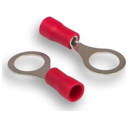 Кольцевой коннектор. Изолированный, красный. Диаметр отверстия: 6,4 mm. Входящий диаметр кабеля: 0,5 — 1,5 mm2. Комплект: 100 шт.
