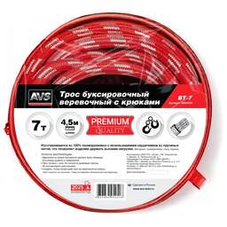 AVS Трос буксировочный веревочный с крюками 7т 4,5м BT-7 в сумке
