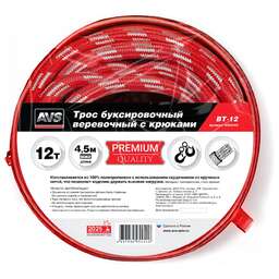 AVS Трос буксировочный веревочный с крюками 12т 4,5м BT-12 в сумке