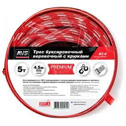 AVS Трос буксировочный веревочный с крюками 5т 4,5м BT-5 в сумке