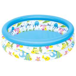 Надувной бассейн Bestway "Морская жизнь" для детей от 6 лет. Изготовлен из высококачественного винила, устойчивый, надежный и безопасный. Имеет мягкие стенки с широкими бортиками и жесткое дно из ПВХ-пленки. Возраст: от 6 лет. Высота борта: 53 см . Материал: винил. Размер: 170х53 см. Объём: 697 л . Вес: 3,2 кг .