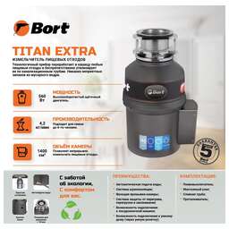 Измельчитель пищевых отходов Bort TITAN MAX Power 780 Вт; 1400 мл; 3800 об/мин; 6,3 кг; 220 В; 50 Гц; набор аксессуаров 4 шт [91275790]