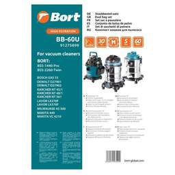 Набор из прочных фильтр-мешков из многослойной синтетической ткани повышенной плотности. Позволяют собирать мельчайшие частицы пыли, влажный и строительный мусор. Класс фильтрации М. Количество в упаковке, шт: 5. Подходит: BSS-1218