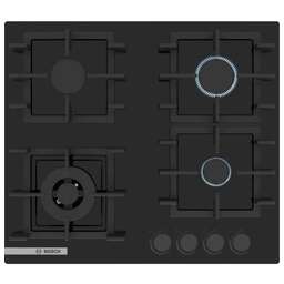 BOSCH Газовая варочная панель PNK6B6P40R, 4 конфорки, закаленное стекло, черный