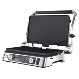Количество программ/режимов: 3. Тип управления: электронное. Тип нагревательного элемента: ТЭН. Ширина рабочей поверхности: 37. Длина рабочей поверхности: 23. Антипригарное покрытие нагревательных частей: есть. Съемные формы: есть. Установка температуры приготовления: есть. Раздельное включение нагревательных элементов: есть. Информационный дисплей: есть. Лоток для сбора жира: есть. Индикатор включения: есть. Индикатор нагрева: есть. Ненагревающаяся ручка: есть. Мойка рабочих поверхностей в посудомоечной машине: да. Раздельная регулировка температуры для пластин: есть. Раскрытие на 180 градусов: есть. Длина электрокабеля: 1.2. Габариты упаковки (ед) ДхШхВ: 0.5x0.22x0.39. Вес упаковки (ед): 5.9. Гарантия: 12 мес.. Цвет: черный и серебристый. Материал корпуса: металл. Размеры (ШхВхГ): 45.8 х 18.5 х 34.3см. Мощность: 2200 Вт. Температура: 265 °С. Нагревательный элемент: ТЭН. Мощность: 2200 Вт. Количество программ/режимов: 3. Особенности: раскрытие на 180 градусов, лоток для сбора жира. Температура: 265 °С. Управление: электронное