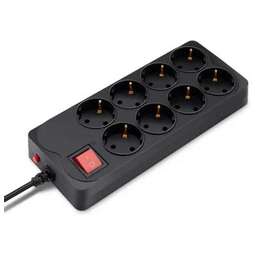 Омедненный (CCA) основной силовой кабель и все проводники. Длина шнура - 3м. Количество выходных розеток - 8. Входная вилка, тип - EURO. Выходные розетки с заземлением типа EURO - 8. Номинальное напряжение питающей сети - 220В. Максимальная рассеиваемая энергия - 107 Дж. Максимальный импульсный ток помехи - 4500A. Частота сети - 50 Гц. Максимальная нагрузка - 2200Вт. Максимальный ток нагрузки - 10A. Подавление высокочастотных помех. Защита от короткого замыкания - биметаллический размыкатель. Защита от перегрева. Автоматический (термобиметаллический) предохранитель. Подавление импульсных помех. Цвет - черный.