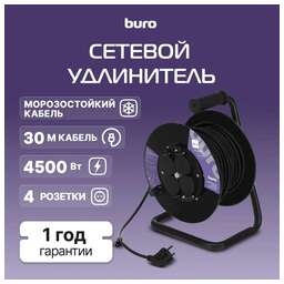 BURO Сетевой удлинитель BU-PSR4.30/FRG-20, 30м, черный