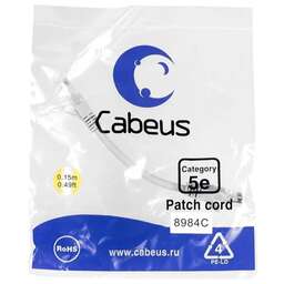 Бренд: CABEUS Тип: Патч-корд PartNumber/Артикул Производителя: PC-UTP-RJ45-CAT.5E-0.15M-LSZH Экранирование: U/UTP Коннектор А: вилка RJ-45 Коннектор Б: вилка RJ-45 Тип используемого волокна/категория медного кабеля: кат.5E Длина товара: 0.15 м Цвет: серый Тип оболочки: LSZH Вес упаковки (ед): 0.05 кг