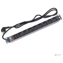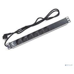 [Cabeus Аксессуары к монтажным шкафам] Cabeus PDU-8P-2EU Блок евророзеток для 19"шкафов, горизонтальный, 8 розеток, 16 A,выключатель, шнур 2м, алюминиевый корпус