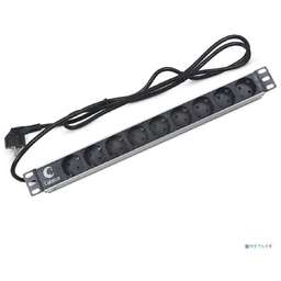 [Cabeus Аксессуары к монтажным шкафам] Cabeus PDU-9P-2EU Блок евророзеток для 19" шкафов, горизонтальный, 9 розеток, 16 A, без выключателя, шнур 2м, алюминиевый корпус, немецкий стандарт