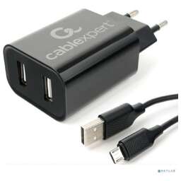 Cablexpert Адаптер питания 100/220V - 5V USB 2 порта, 2.1A, черный (MP3A-PC-12)