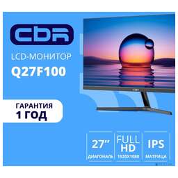 Тип товара: Монитор; Тип оборудования: Монитор; Модель: Q27F100; Цвет: Комбинированная расцветка; Яркость матрицы: 280 кд/м2; Статическая контрастность: 1000 -1; Динамическая контрастность (DCR): 5000000 -1; Время отклика (мс): 5; Широкоформатный: Есть; Максимальное разрешение: 1920 x 1080; Угол обзора: 178° / 178°; Подсветка матрицы: LED; Диагональ (дюймов): 27; Соотношение сторон: 16 -9; Тип панели: IPS; Поверхность экрана: Матовая; Частота обновления кадров (Гц)