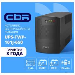 CBR TECH ИБП CBR [UPS-TWP-101J-650] 650VA/390W, Schuko CEE 7 x2 outlets, LED, AVR, SEC, 12V/7Ah