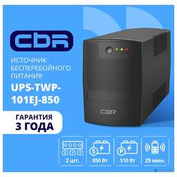 CBR TECH ИБП CBR [UPS-TWP-101EJ-850] 850VA/510W, Schuko CEE 7 x2 outlets, LED, USB Type-B, RJ11/45 AVR, SEC, 12V/8Ah