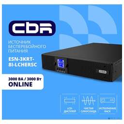 CBR TECH ИБП CBR ESSENCE ESN-3000 RT [Online 3000 VA / 3000 W, Rack/Tower, 8 x C13, 1 х С19, LCD, HID-USB, RS232, EPO, SNMP slot] (ESN-3KRT-9I-LCHERSC)