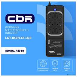 [ИБП] ИБП CBR LIGHT LGT-850 [850VA/480W 6 x EURO, 3 c фильтрацией + 3 с резервированием, Breaker] (LGT-850H-6F-LDB)
