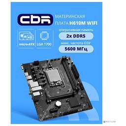 CBR Материнская плата H610M WiFi { Chipset H610, Socket 1700, 2*DDR5, mATX, DP+HDMI, 1*PCIEx16,1*PCIEx1,1*M.2 NVME, 3*SATA3, 4*USB 2.0 + 2*USB3.0,WiFi, LAN 1Gb}